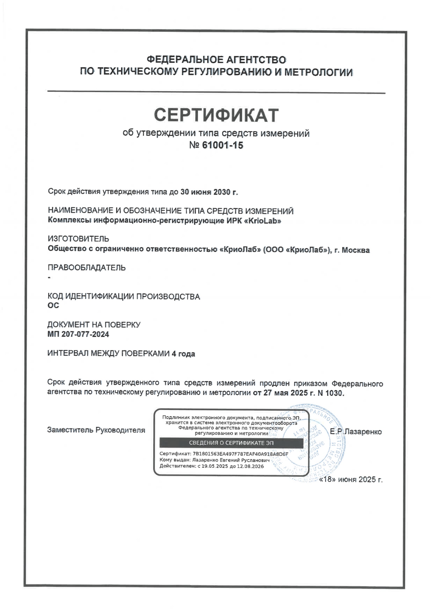 Термометрическое оборудование, производимое OOO «КРИОЛАБ», отвечает всем современным требованиям промышленной безопасности к эксплуатации на объектах нефтяной и газовой промышленности. Точность, надежность и безопасность, подтверждаются соответствующими свидетельствами и сертификатами