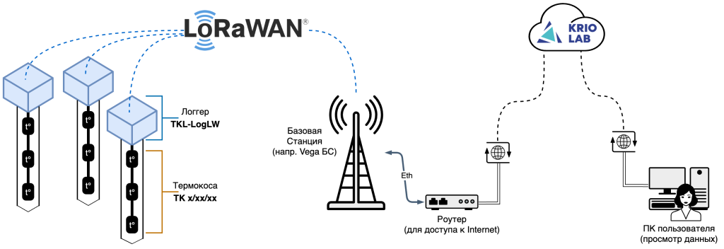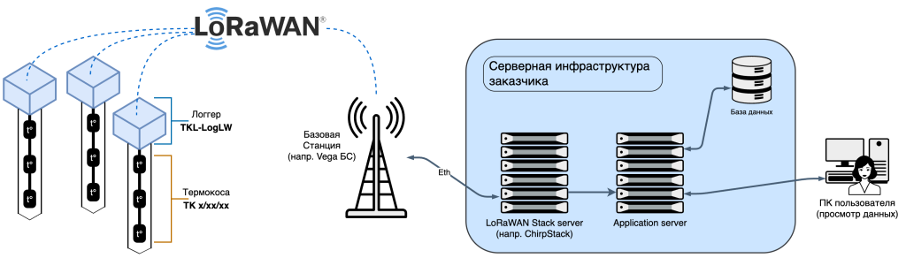 Если вы планируете использовать только наше оборудование, то вам достаточно приобрести наши логгеры с термокосами, а также базовую станцию и смонтировать оборудование. Все оборудование будет настроено. Данные будут поступать на наш сервер, откуда вы сможете их получать в любое время.